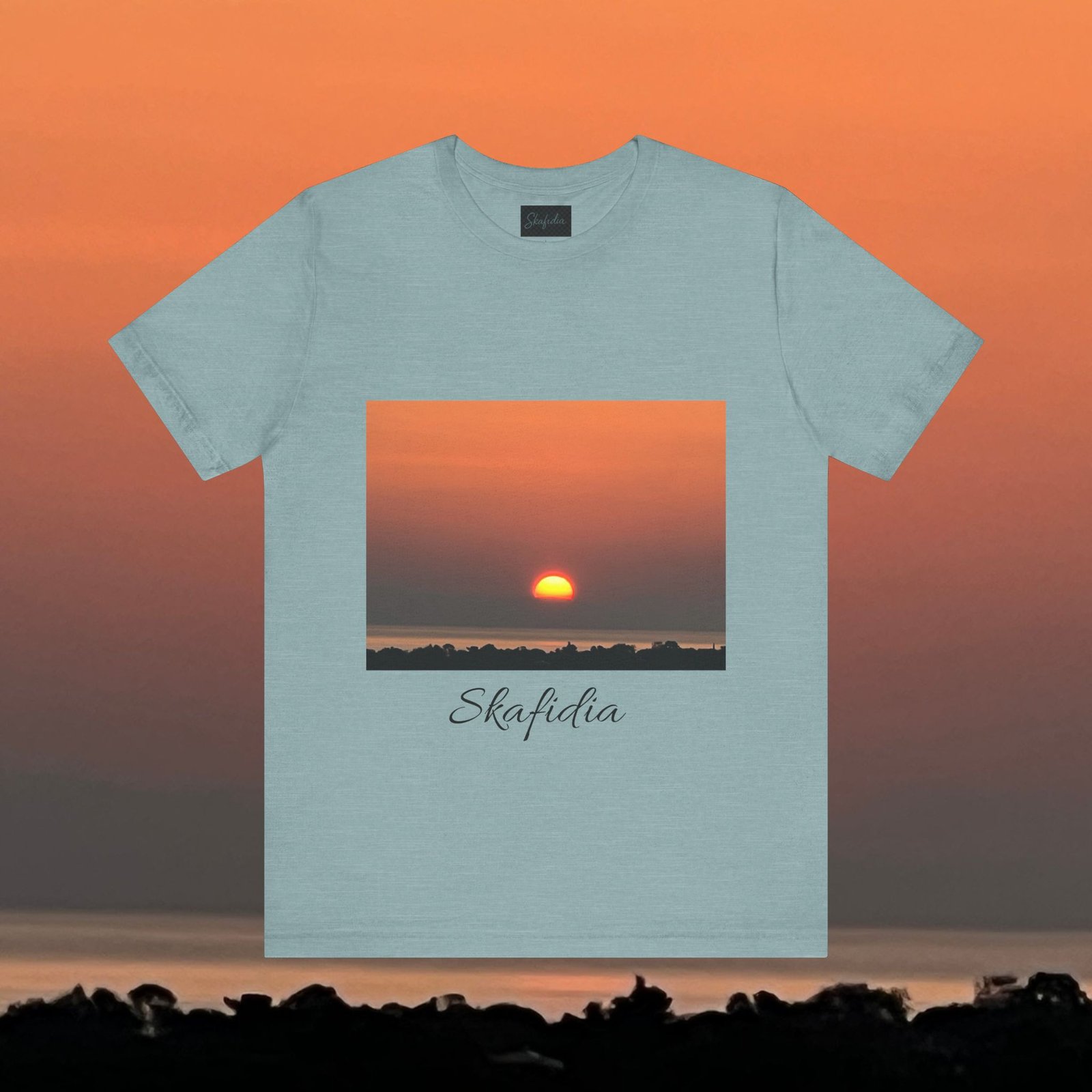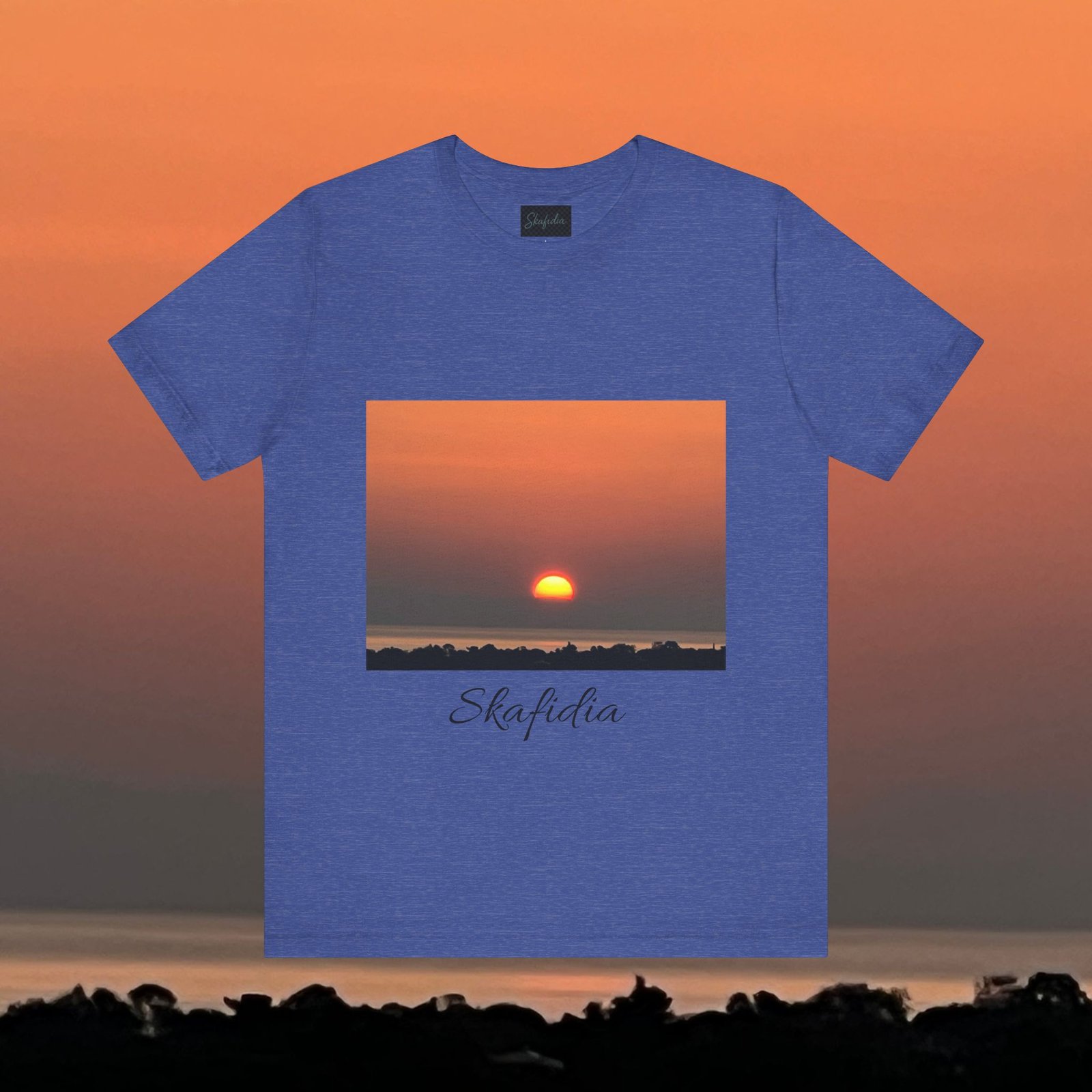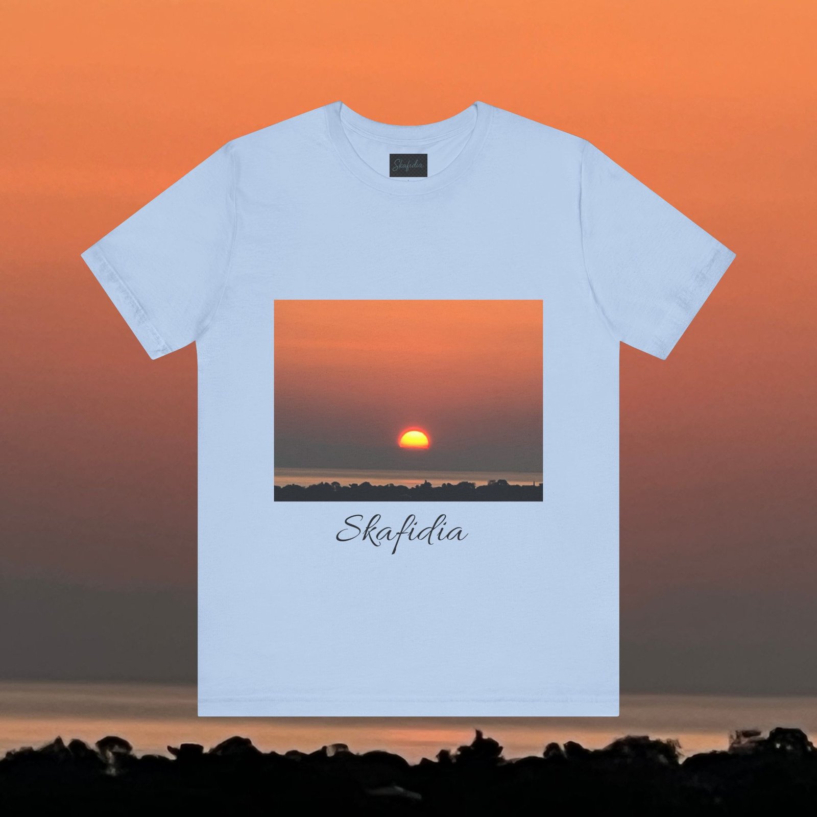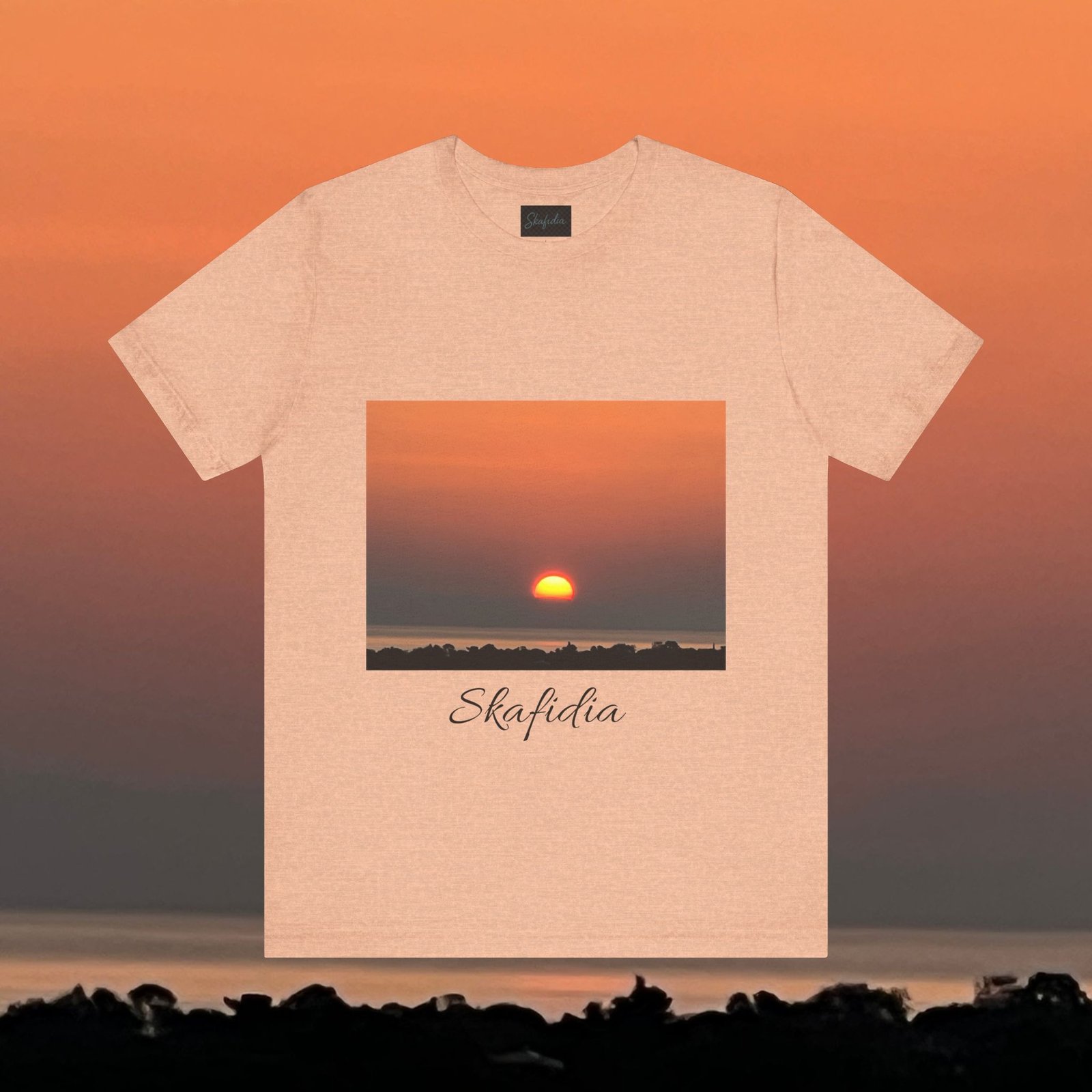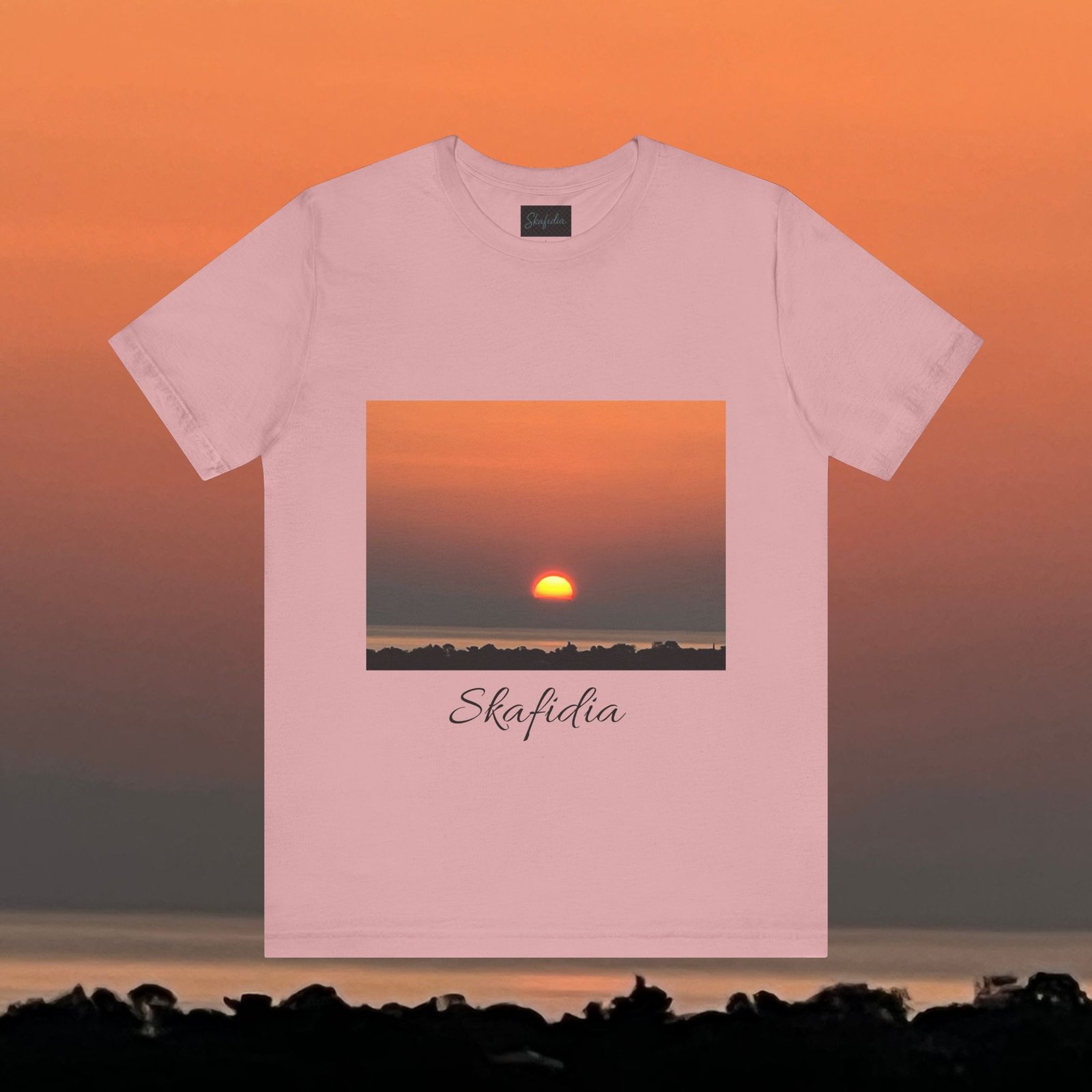 Skafidia Sunset Unisex Jersey Tee – Relaxed Fit Short Sleeve Tee for Casual Wear